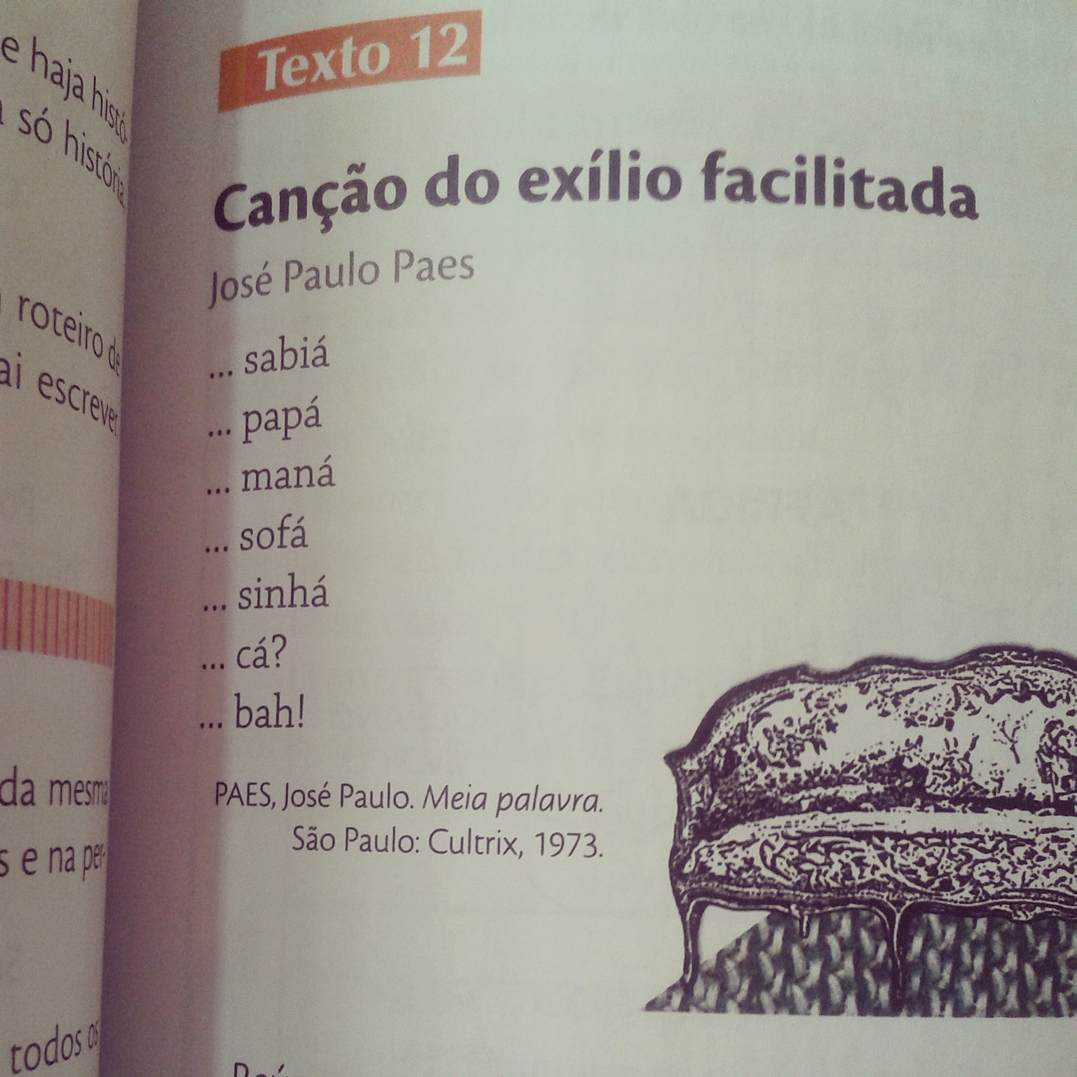 Me assustei ao encontrar coisas do tipo: o poema do José Paulo Paes sem os dois primeiros versos e com a pontuação esquizofrênica.