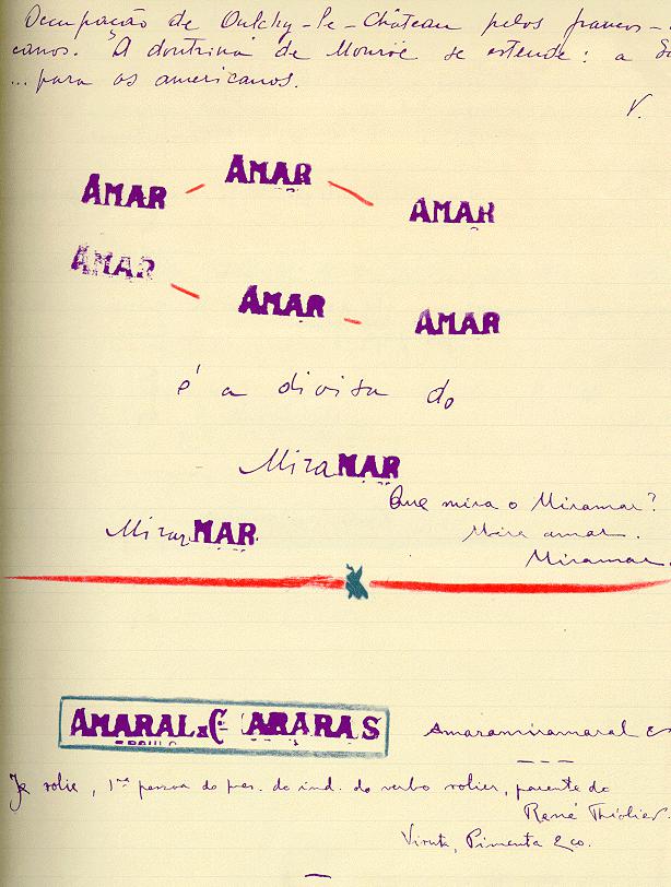 2. Parte superior: “Ocupação de Oulchy-le-Château pelos franco-americanos. A doutrina Monröe se estende: a Europa… para os americanos”. No centro: “Amar é a divisa do Miramar”. (ANDRADE, 1992, p. 109)